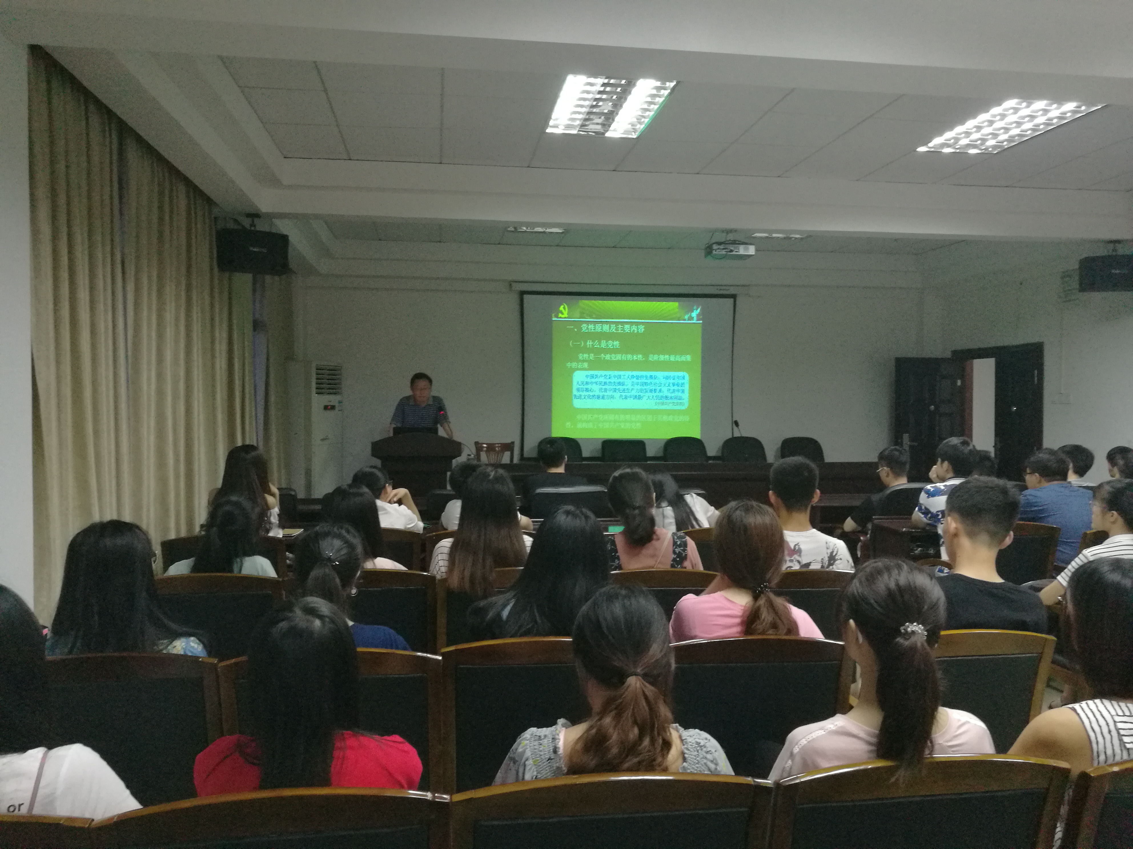 6月8日晚7:30在信息楼416报告厅,院党委书记王鹏飞为参加预备党员培训学习的全体学员讲了题为《坚持党性原则,做“四讲四有”合格党员》的党课。