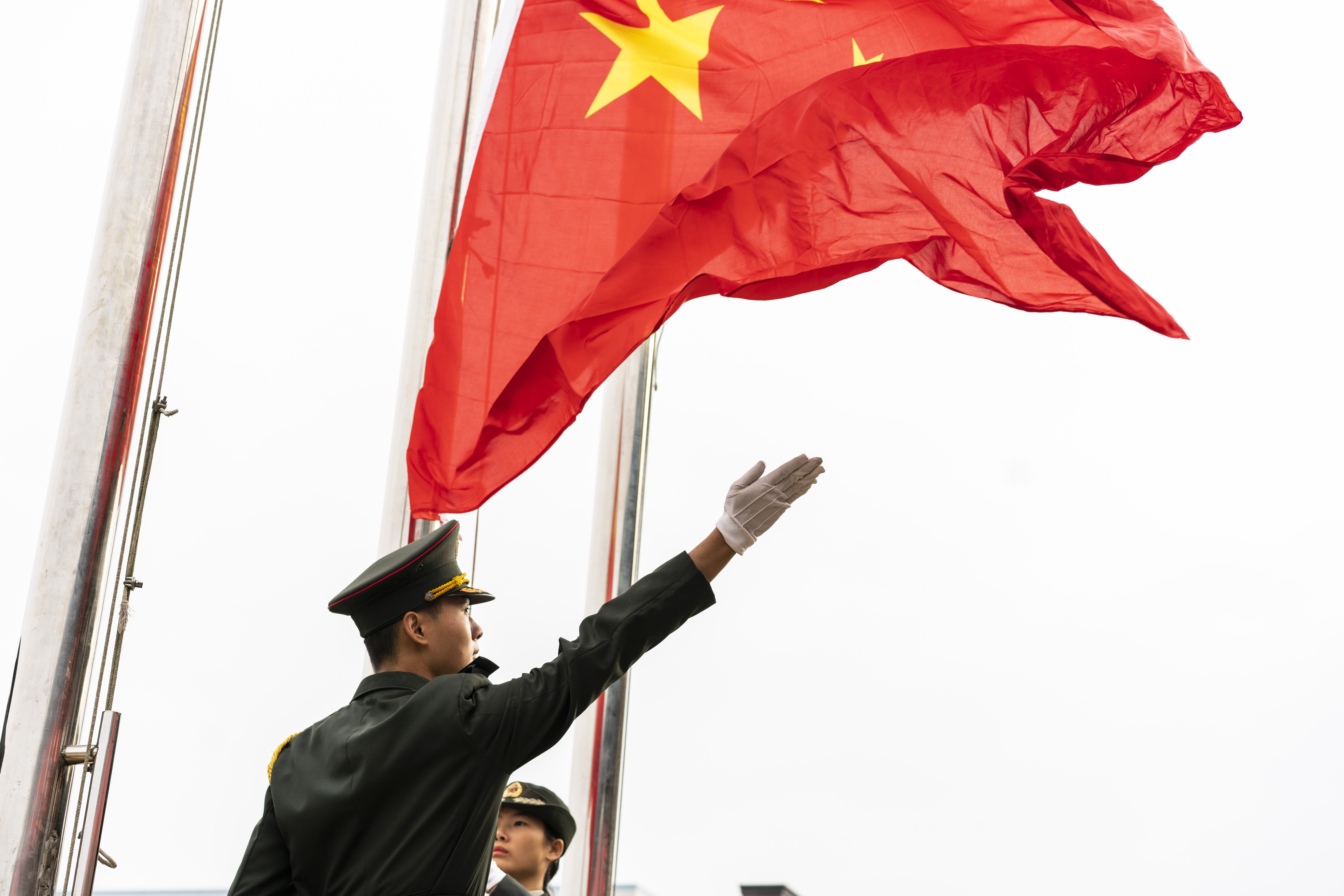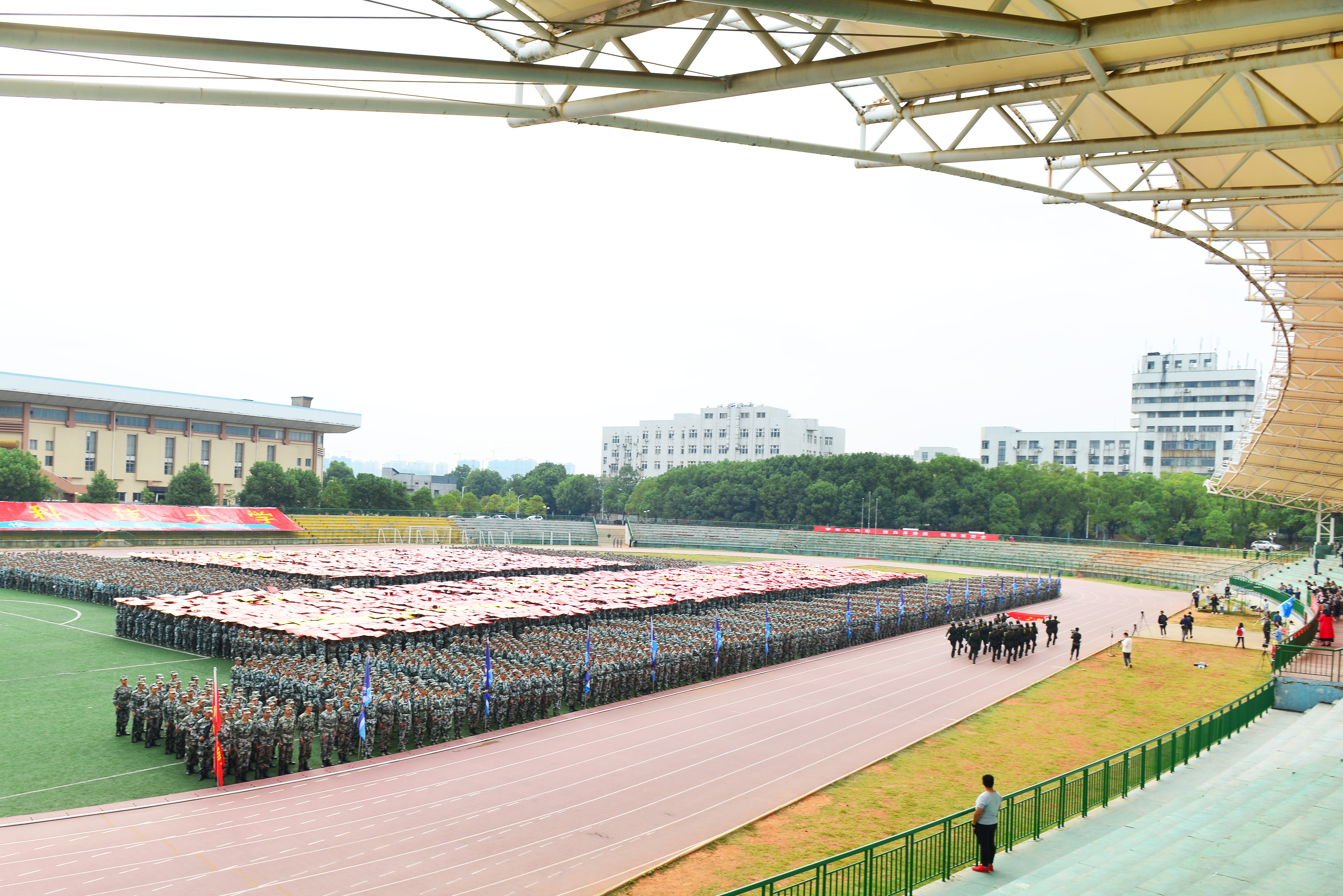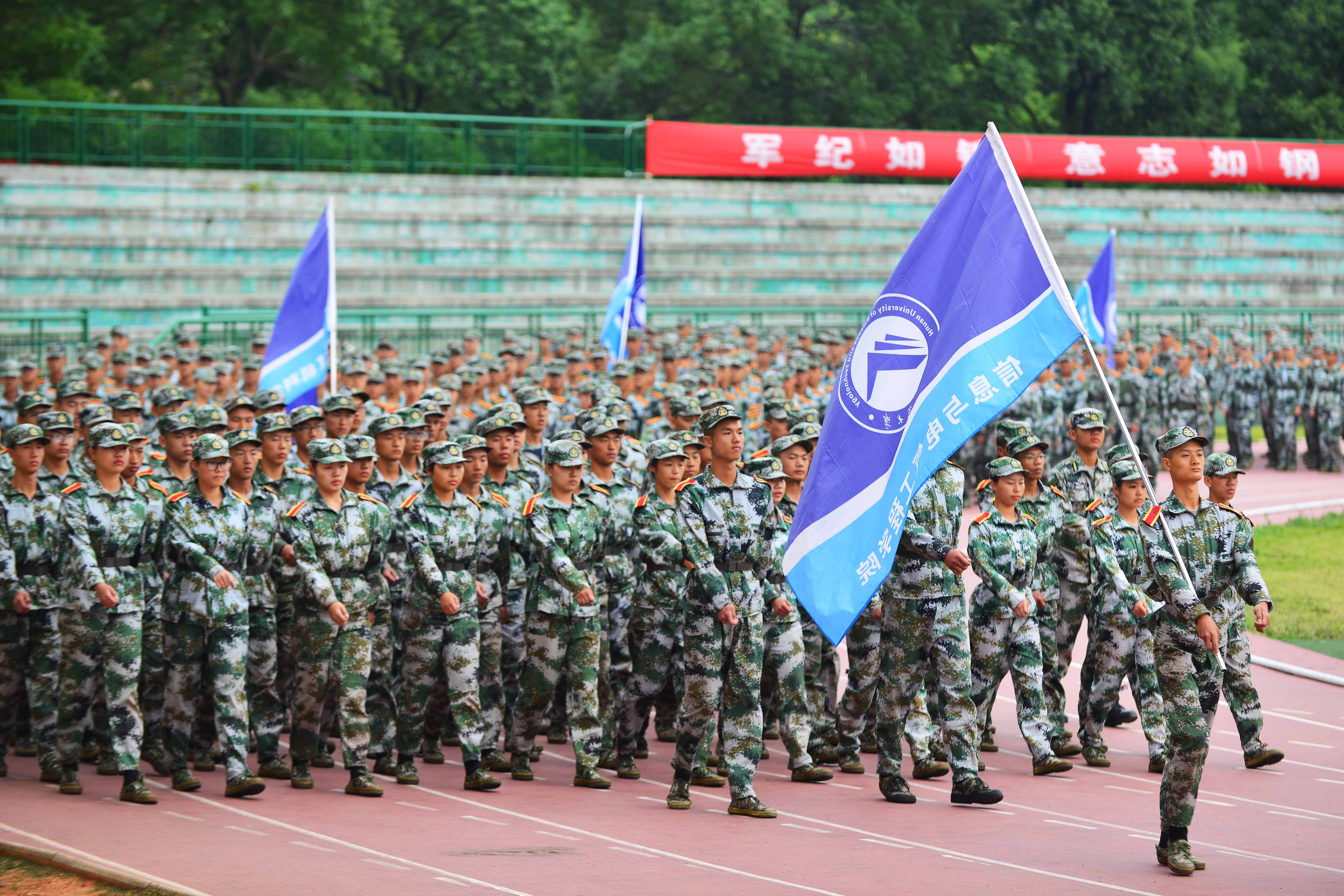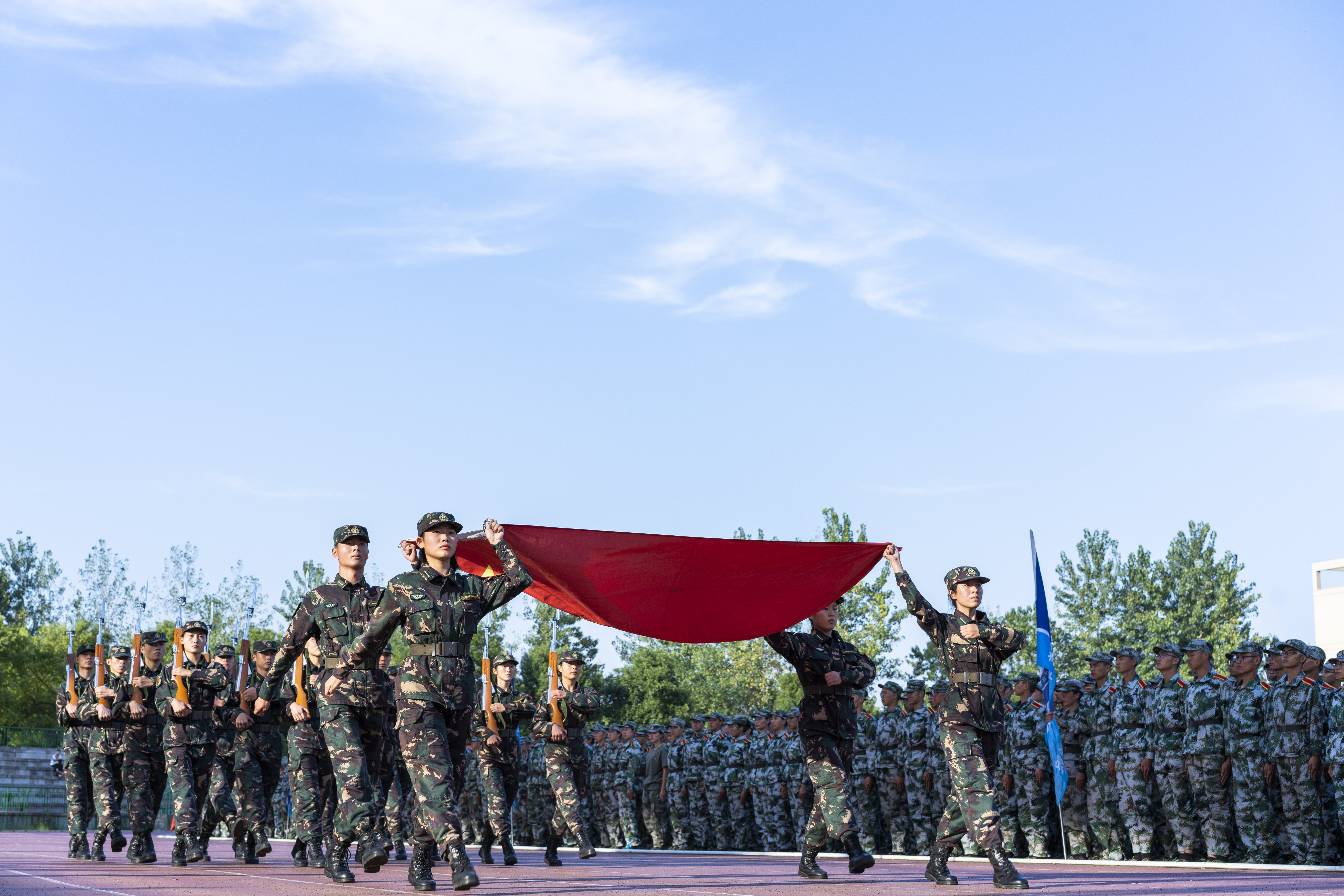 “全体起立!迎国旗!”国旗护卫队以笔挺的英姿、有力的步伐护送国旗,大会在激昂的国歌声中拉开帷幕。随后,由校长李伯超检阅2018级全体参训同学,一句句气势恢宏的“校长好!为科大争光!”无不展现着科大学子奋发拼搏的精神面貌。检阅完毕后,分列式表演正式开始。经过为期12天的意识的磨练与体力的考验,各个方阵队意气风发、昂扬向上,尽显英姿。信息学院方阵队迈着整齐的步伐通过主席台,一句嘹亮的“信息信息,自强不息。披荆斩棘,力争第一!”响彻整个北校田径场。