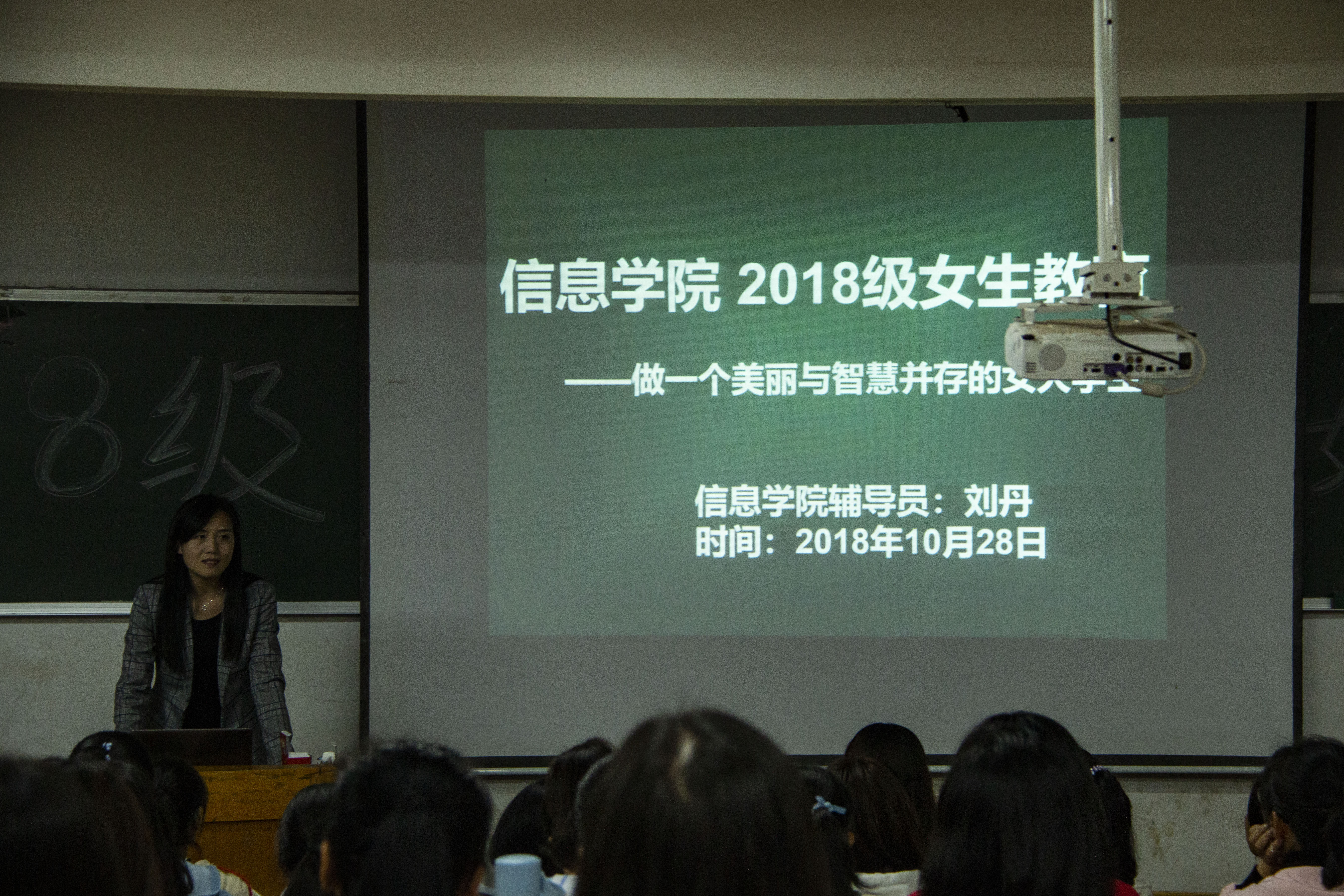 10月28日晚7:00,3044am永利集团官网(以下简称“信息学院”)在信息楼二合班召开2018级女生大会。本次大会特邀信息学院学工办老师刘丹及16级四位优秀学生代表参加,2018级全体女生与会。刘丹及优秀学生代表分别就女生的人身安全、心理问题和学习、工作、生活等方面与大家分享交流。