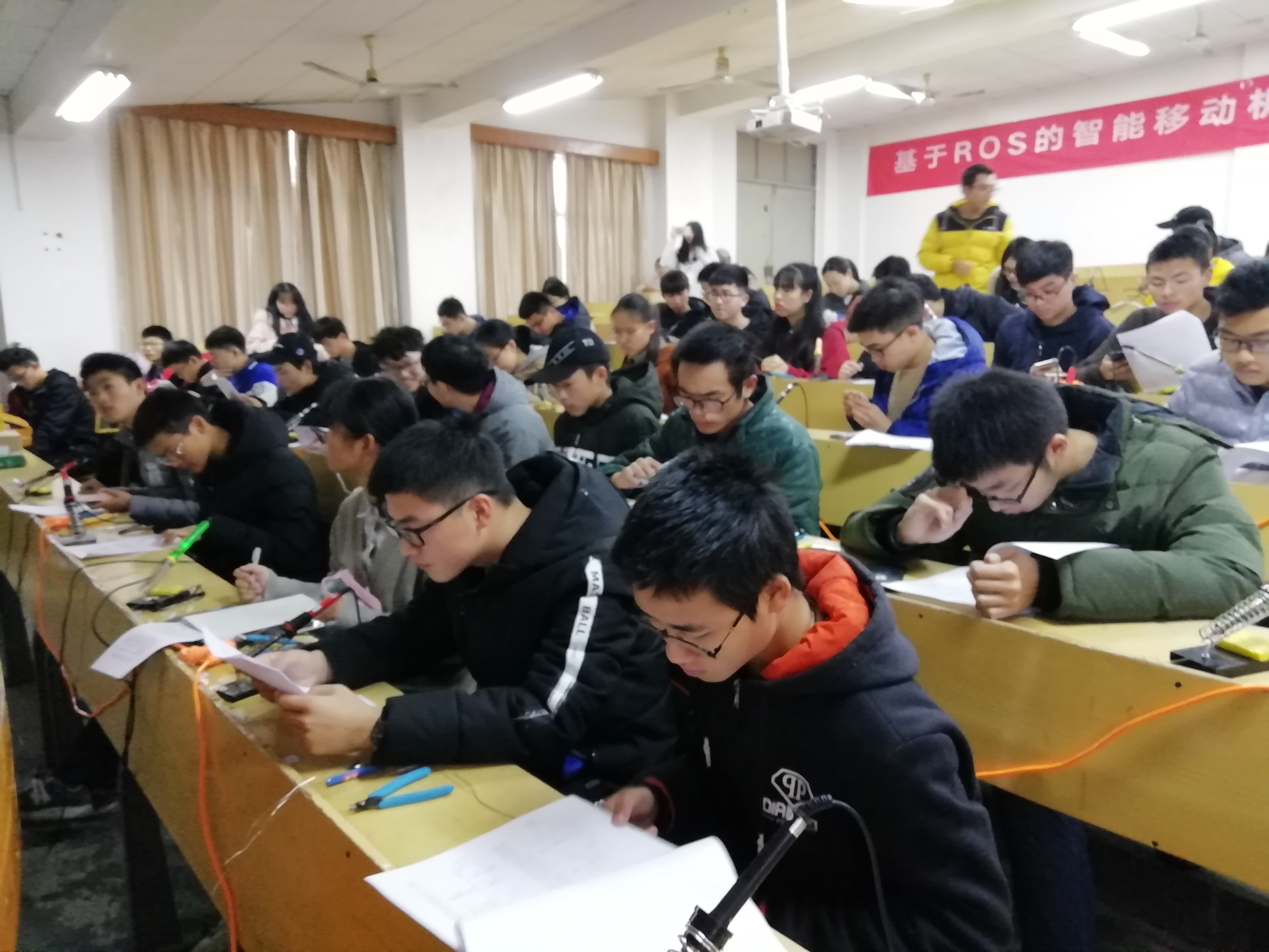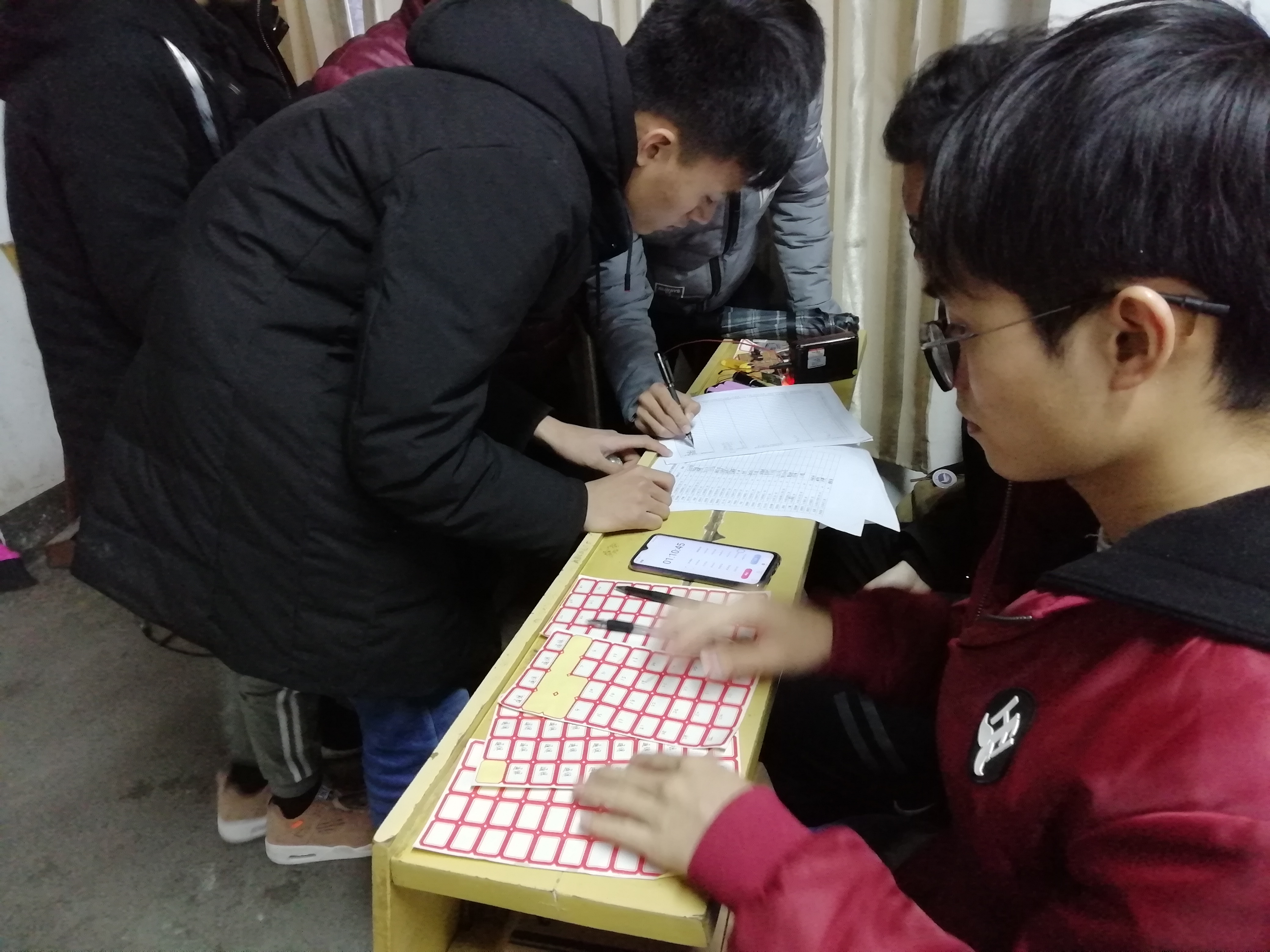 12月22日下午两点半,由3044am永利集团官网通信俱乐部(以下简称“通俱”)承办的电子制作大赛决赛于信息楼二合班拉开帷幕。此次比赛面向初赛中脱颖而出的44位电子爱好者。由通俱技术部部长杨鑫鑫,罗江平担任此次比赛的评委,并根据评分细则对比赛作品进行现场打分。
