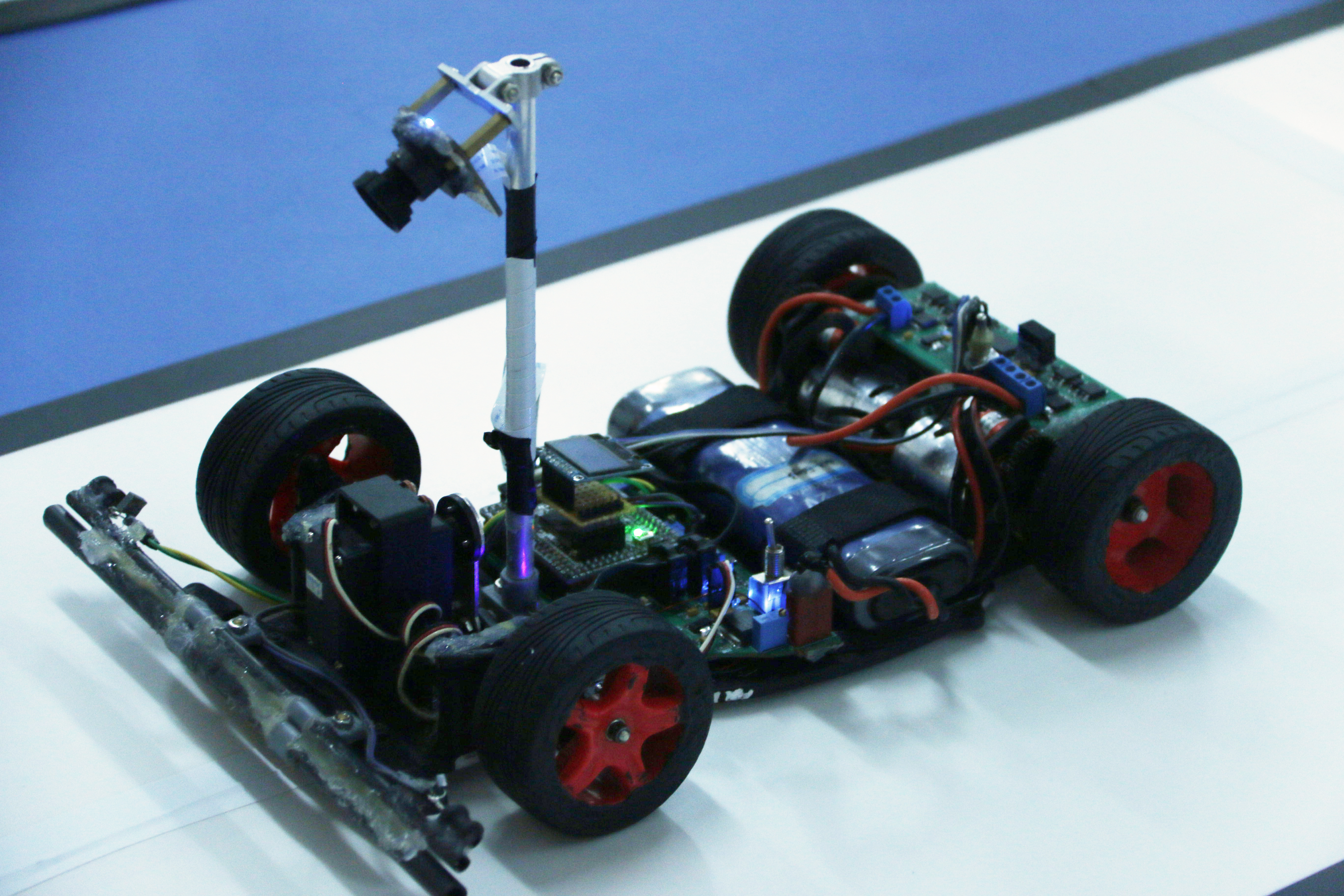 大赛伊始,陈祖国首先对来我校进行交流的学生表示热烈的欢迎,随后为参赛学生介绍了“恩智浦”杯智能汽车竞赛的相关事项,并希望参赛选手能够通过此次选拔赛展示自己的水平,同时希望各高校智能汽车爱好者能够相互学习,分享经验,共同进步。比赛开始后,信息学院创新实验室成员黄永翔凭借仅耗时18.66秒的“完美首秀”,展示了湖南科技大学智能车队的实力,赢得了在众人的掌声。随后各参赛选手相继上场,同台竞技,为大家带来了一场速度与激情的视觉盛宴。赛程之后,卢明携往届参赛的智能车队队员一起观摩了其他院校智能车爱好者的“爱车”展示和试跑,一起分享关于制作和调试智能车的方法和经验。