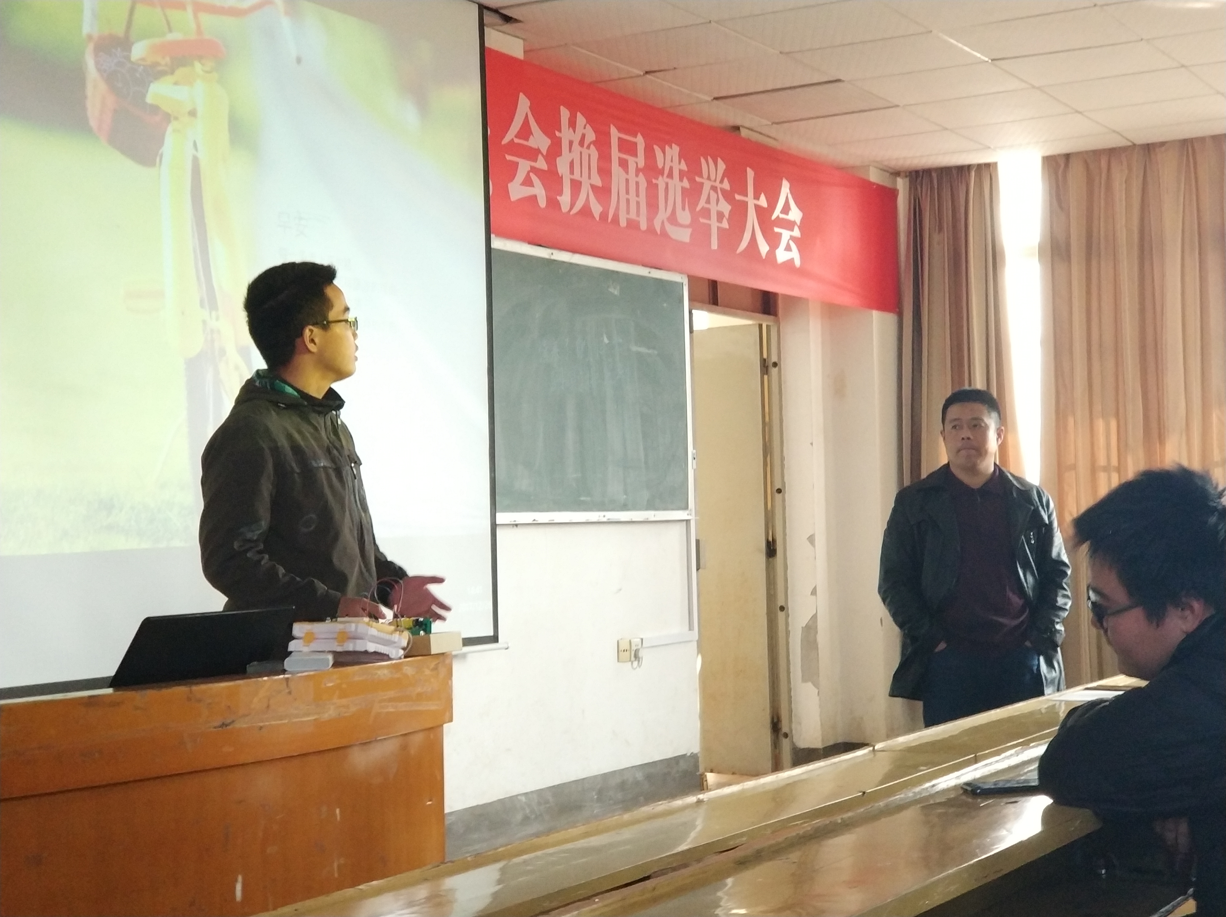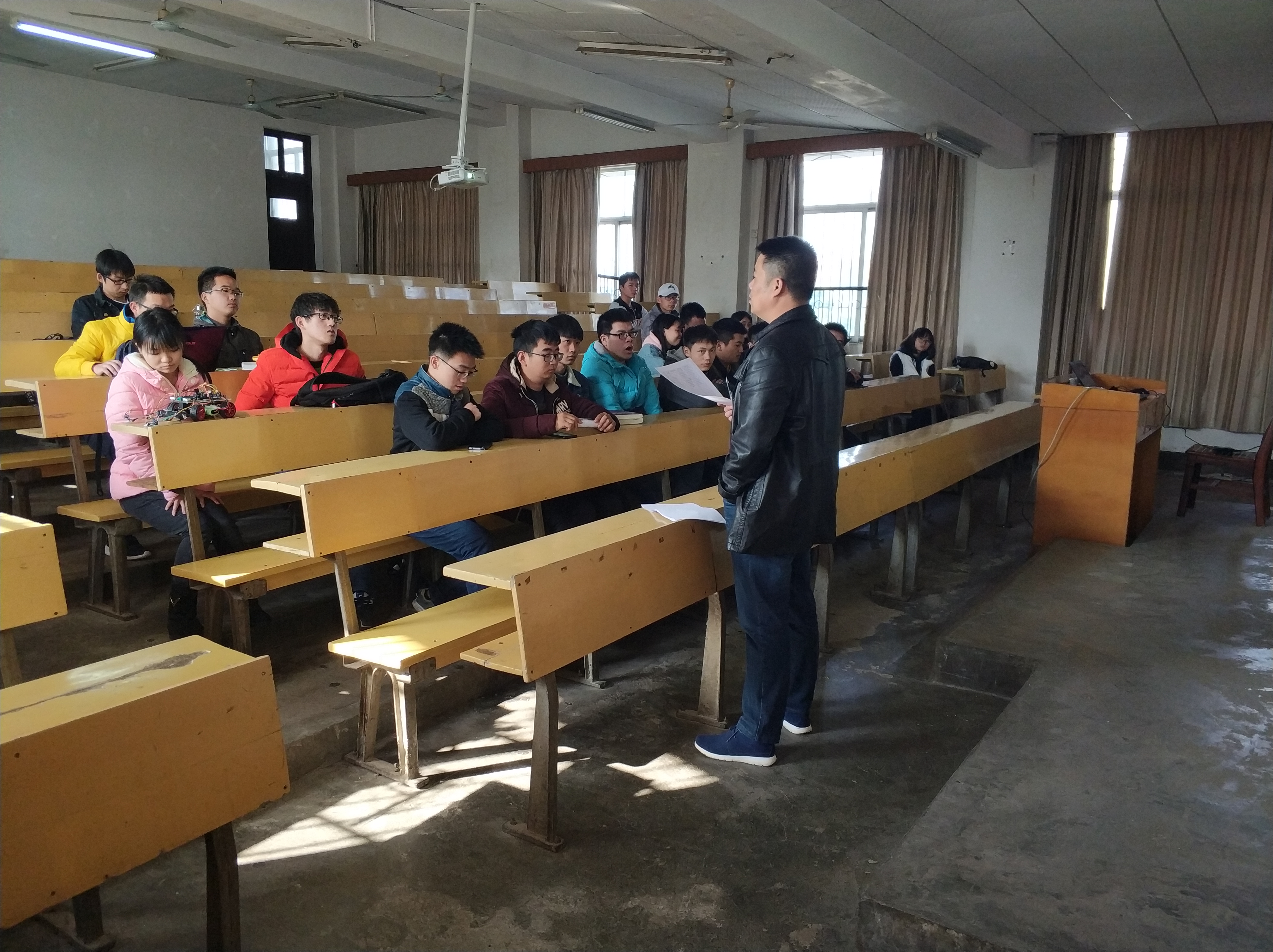 12月26日下午两点半,湖南科技大学“信达杯”智能汽车竞赛答辩交流会在信息楼二合班举行,大会将为湖南科技大学智能汽车队选拔新成员。本次答辩由湖南科技大学智能车队指导老师卢明主持,参与会议的还有智能车队的成员。