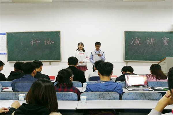 为丰富大学生课余生活,锻炼理工科学生的交流表达能力,4月14日晚七点,3044am永利集团官网第三届学生科学技术协会(以下简称科协)演讲赛在八教1-2顺利举行,由科协主席陈涛、副主席刘志发、丁小苗及科协各部门部长担任本次比赛评委。