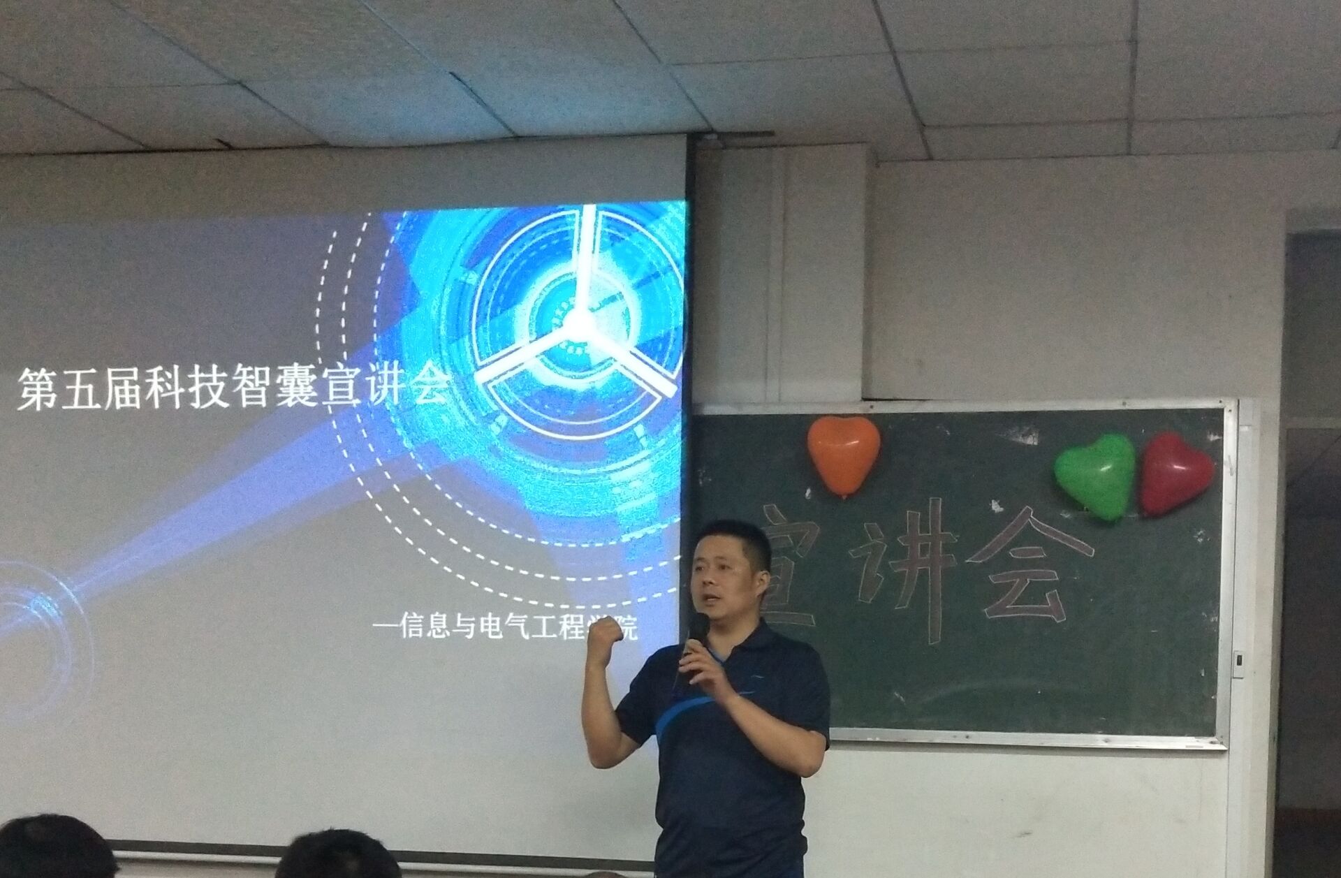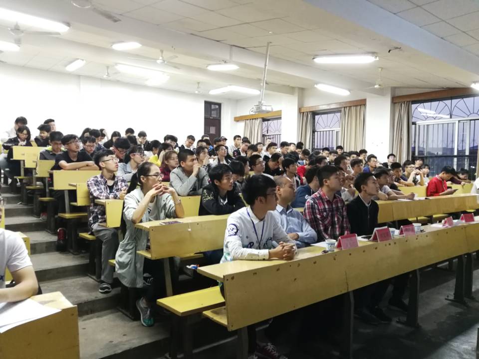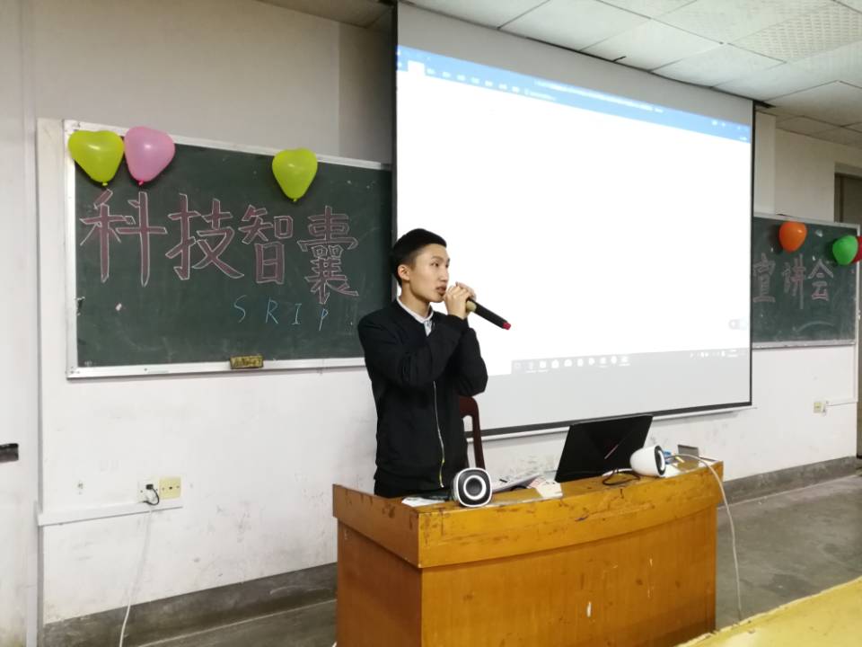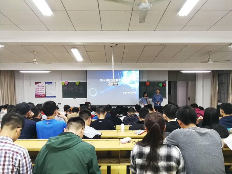 在主持人对本次宣讲会进行简单介绍之后,信息学院院长吴亮红上台致辞,宣布本次“科技智囊”宣讲会正式开始。随后,实验室指导老师卢明介绍了“恩智浦”智能车比赛、“节能减排”、“挑战杯”等一系列比赛,在强调参加科技比赛的重要性时说:“这不但能收获荣誉和奖项,还能充实知识库,转换思维方式和锻炼动手能力,更能让你在与队友的协助合作中收获难得的友谊。”接着,15级电气四班刘文星介绍了“SRIP ”项目申报的相关内容及注意事项,分享了自己在科创方面的经验感悟和科创想法,以幽默的语言和有趣的经历带领在座的同学们走进科创世界。最后,科协副主席刘志发对此次宣讲会进行总结,鼓励同学们多参加科技类竞赛,也希望大家能够进入实验室学习知识,提升自我。