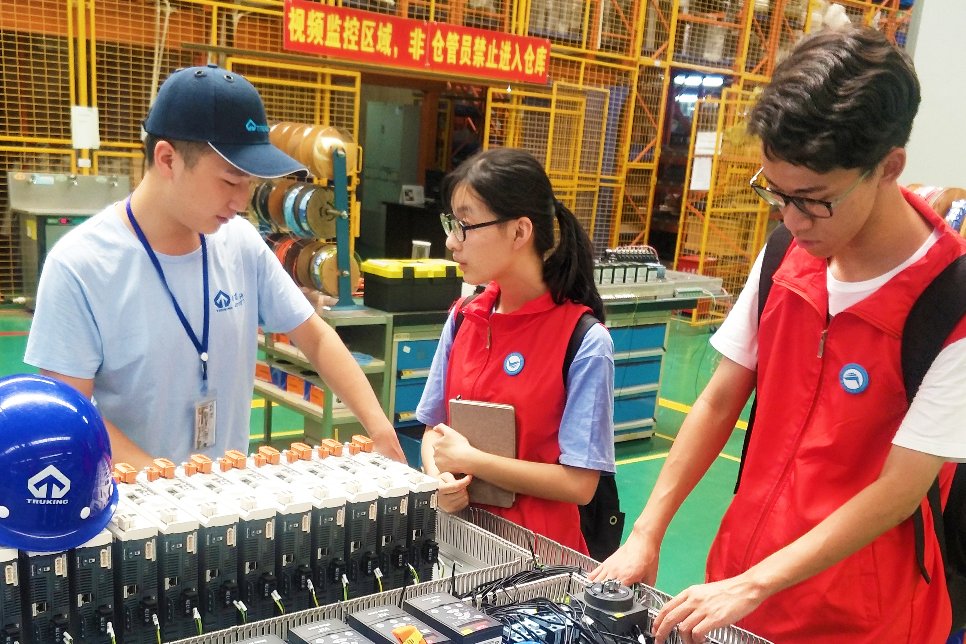下午时分,调研队员跟随18级青苗计划学员走进生产车间,了解楚天科技的实际生产情况。楚天科技主营业务系医药装备,向客户提供定制的制药设备。工作人员向调研队员们介绍到,这些精密的产品都有着严格的生产标准,很多部件都是由国外进口,一个小小器件便价值上万,每一步制造都讲究精益求精,这也对员工有更高的标准、更严的要求。在车间门口,工人师傅们的水壶统一放在整洁的不锈钢架子上,调研队的进入也没有影响师傅们紧张有序的生产工作。