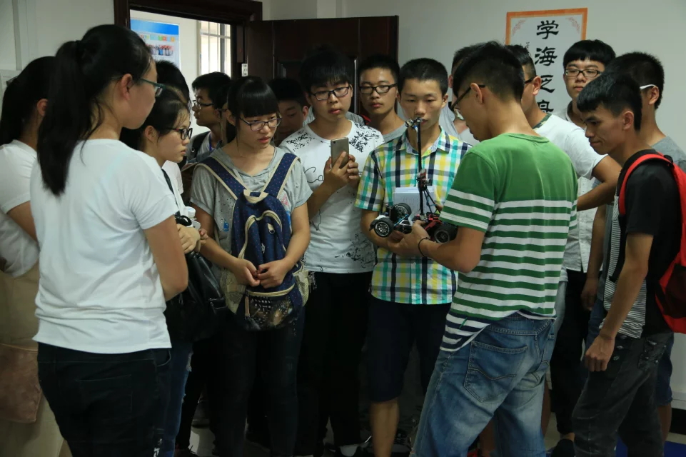 12日下午2点半,全体大一新生在彭老师的组织下在信息楼一楼集合完毕。信息科协代表先对参观实验室的纪律进行说明,随后将参观队伍以两个班为一大组分批来参观实验室。参观实验室,首先从信息楼的历史开始介绍,并讲述了近年来我院的科技赛事成果。随后,以寝室为单位发放科技手册,并有实验室老师、彭老师和学长、学姐带领他们参观了创新训练中心,以及为他们讲解实验室近几年的获奖情况。