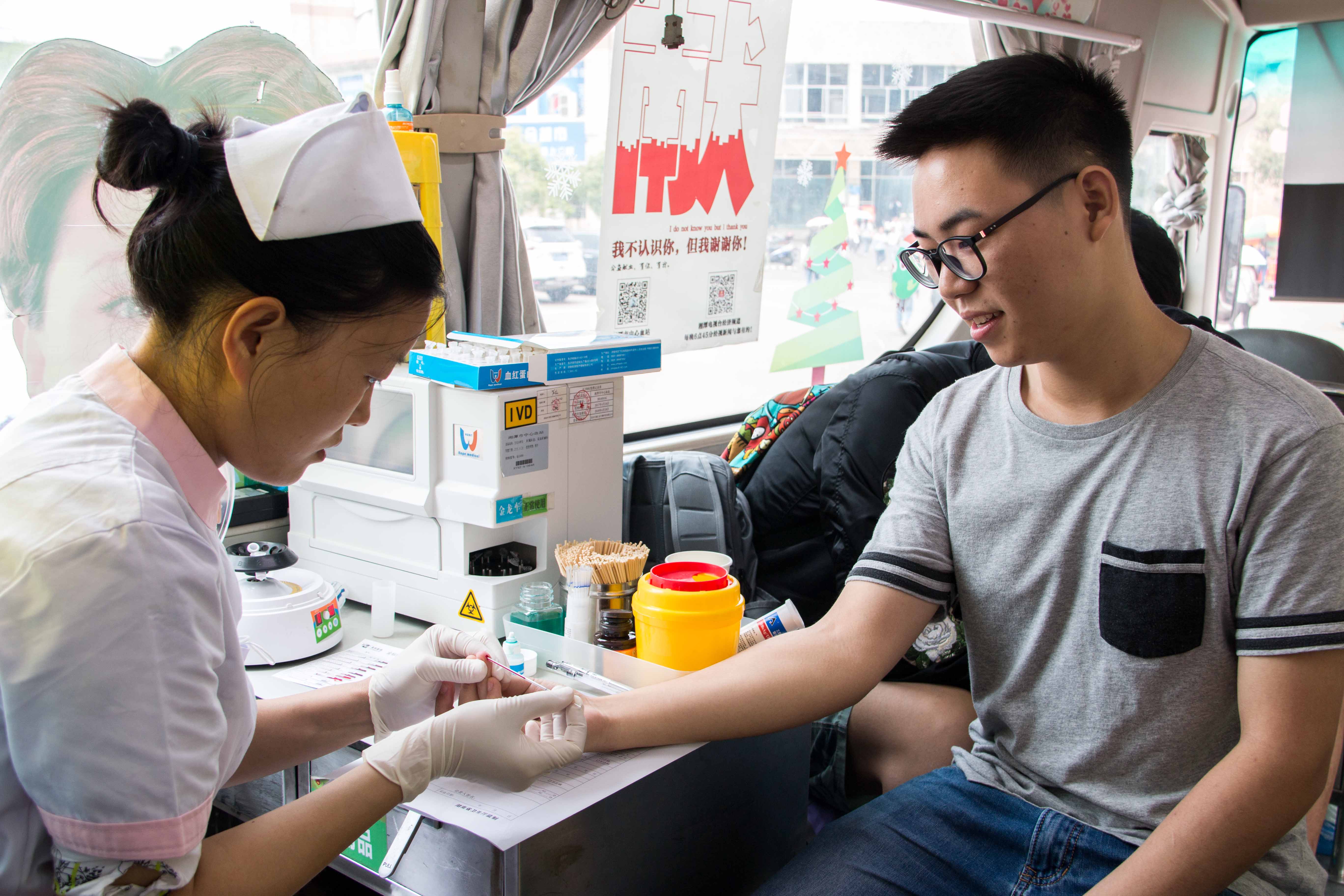 2017年5月6日,3044am永利集团官网在八区新公寓(食堂门口)与湘潭市中心血站联合举办献血服务活动。本次活动主题为:献点滴之血,绿生命之树,旨在号召同学们一起发扬为他人服务、互助互爱的志愿精神。