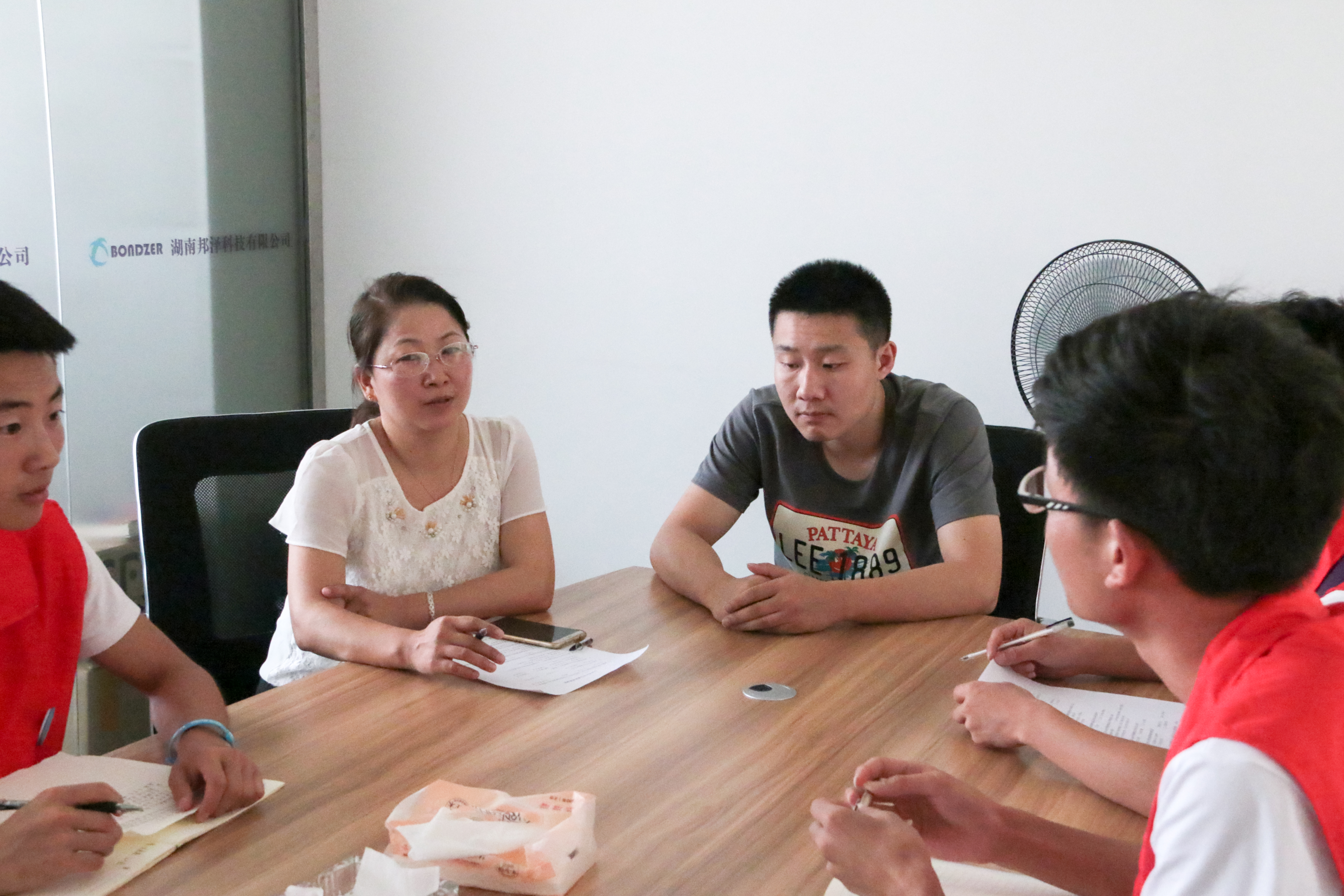 在湖南欣弘气体应用技术有限公司的座谈会上,负责人郭亮说:“在大学生的素质方面,大型企业、国企、外企比较注重专业知识,分工明细,在计算机、英语方面都是有要求的,一般是先实习后定岗定位;小型企业、私营企业比较注重个人综合能力,注重个人价值能为公司带来什么利益。”当实践队员们问到大学生在校应该培养自己哪些方面的能力时,郭亮回答:“做好当下,学好专业知识,培养一种自信,培养自己综合能力。”