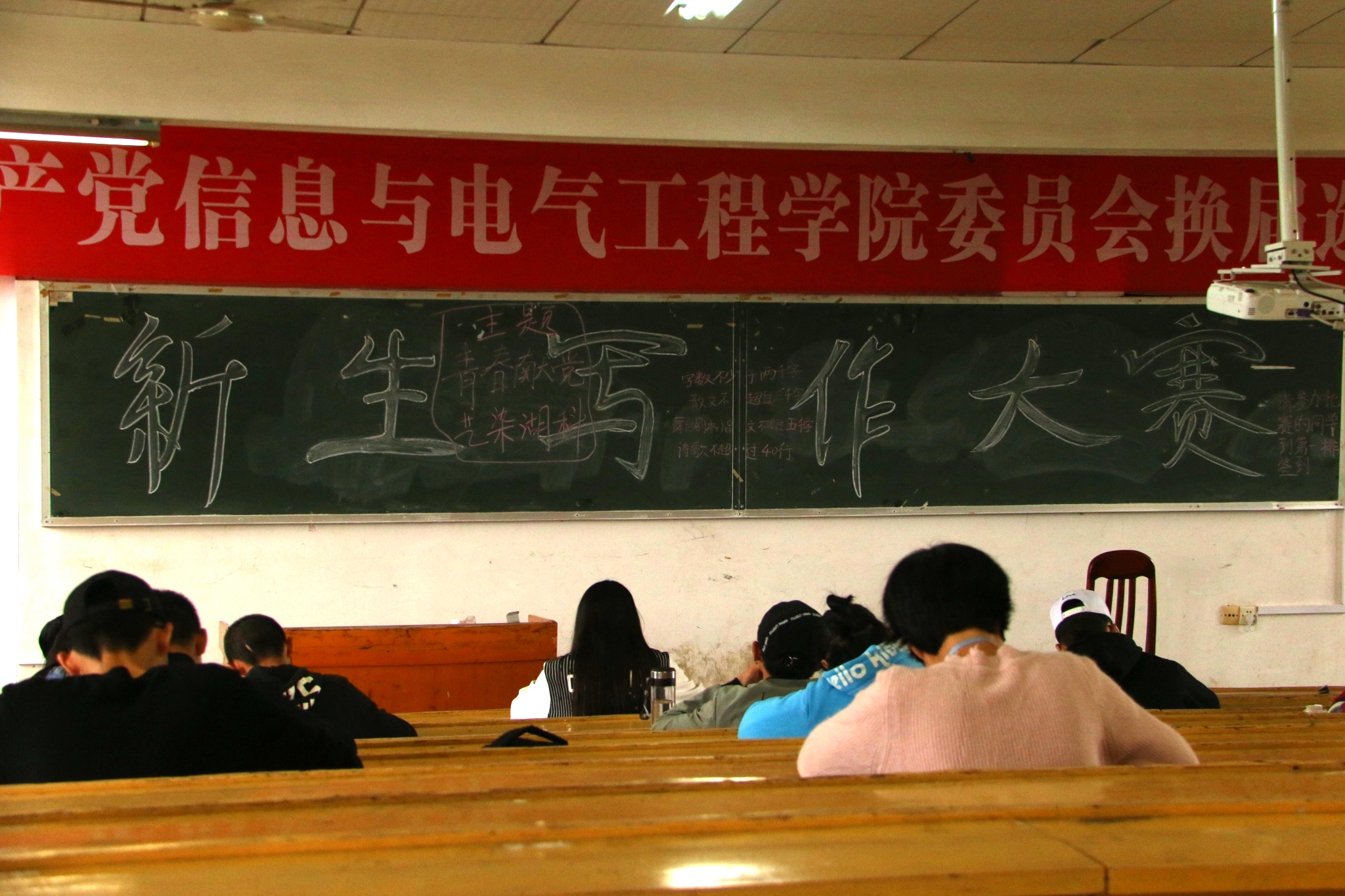 大一新生,3044am永利集团官网于10月19日中午12:30,在信息楼二合班举办了以“青春献党,艺染湖科”为主题的新生现场写作大赛初赛。