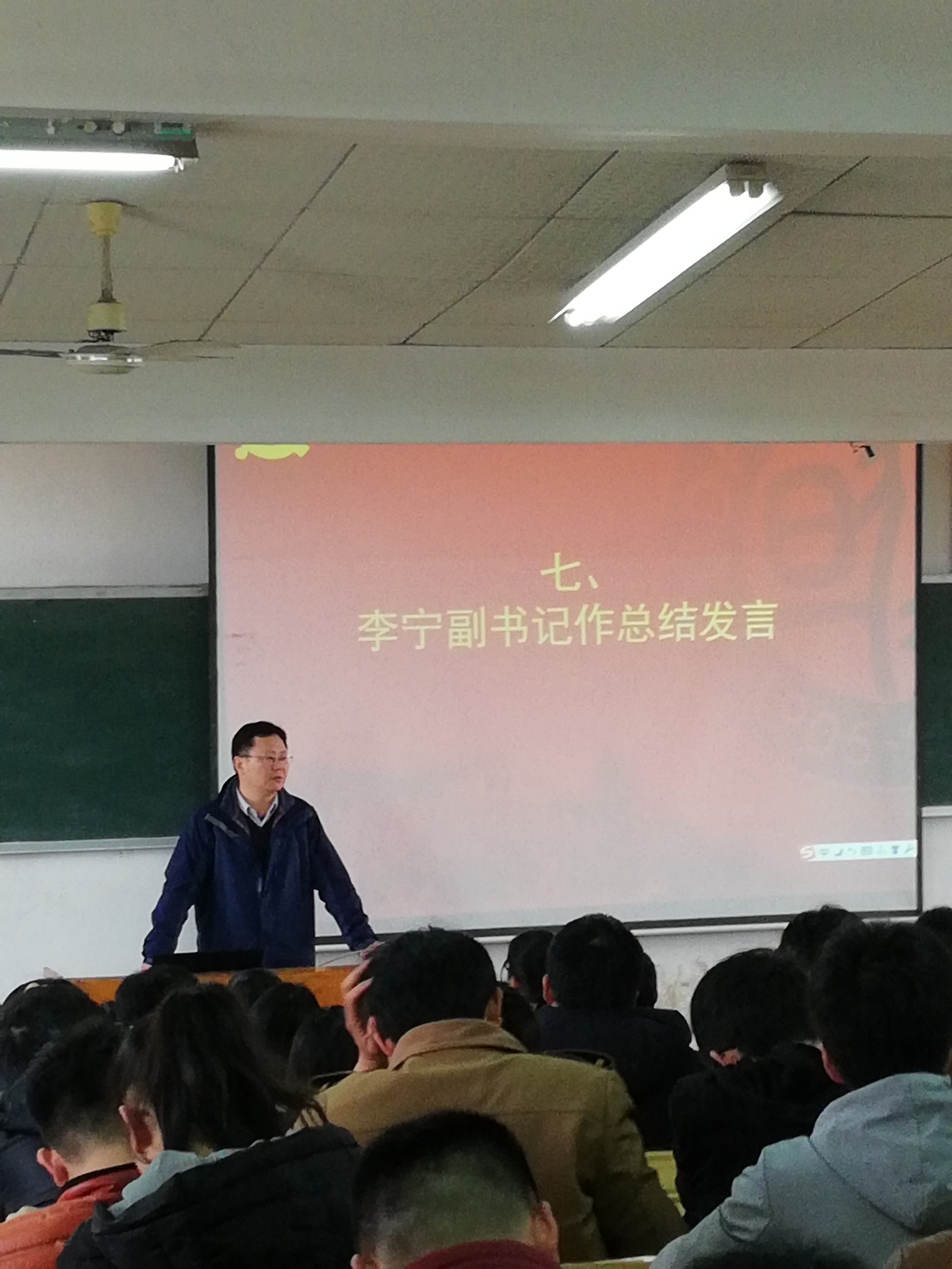 肖善芳老师在新学期对全体学生党员提出了新的要求并寄予了新的希望:全体党员应积极散发和传播正能量,充分发挥党员的先锋模范带头作用,希望在全体党员的积极努力下全院工作能在原有的基础上更上一层楼。最后李宁副书记做了总结讲话。李书记首先亲切地向同学们表达了新年祝福,对所有党员同志表示真心地感谢,同时希望全体学生党员能够不忘初心,继续前进,并建议学生党员旁听教职工党员的民主生活会,互相探讨,不断学习,不断完善自身,学习新思维,交流新想法,将辩证思维、底线思维、问题思维活学活用融会贯通,学习十九大系列讲话,深入贯彻党的十九大精神,在会议临近尾声之时他预祝全体党员在新的一年里取得优异成绩!