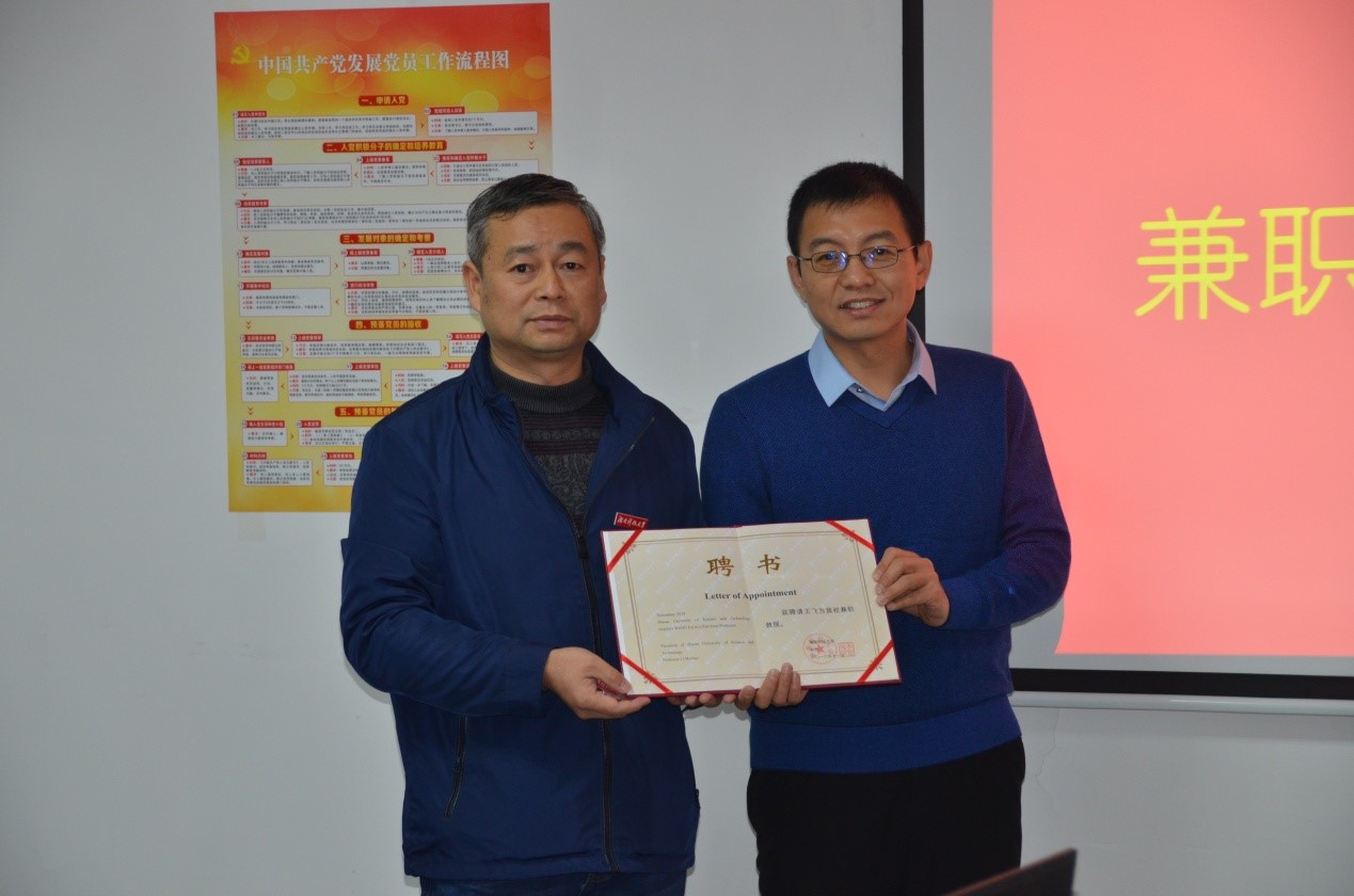 12月4日上午,北京博鹰通航科技有限公司董事长王飞正式受聘为我校3044am永利集团官网兼职教授,聘任仪式在信息楼414会议室举行。人事处副处长张新康、3044am永利集团官网党委书记王鹏飞、副院长赵延明等参加了仪式,仪式由院党委书记王鹏飞主持。