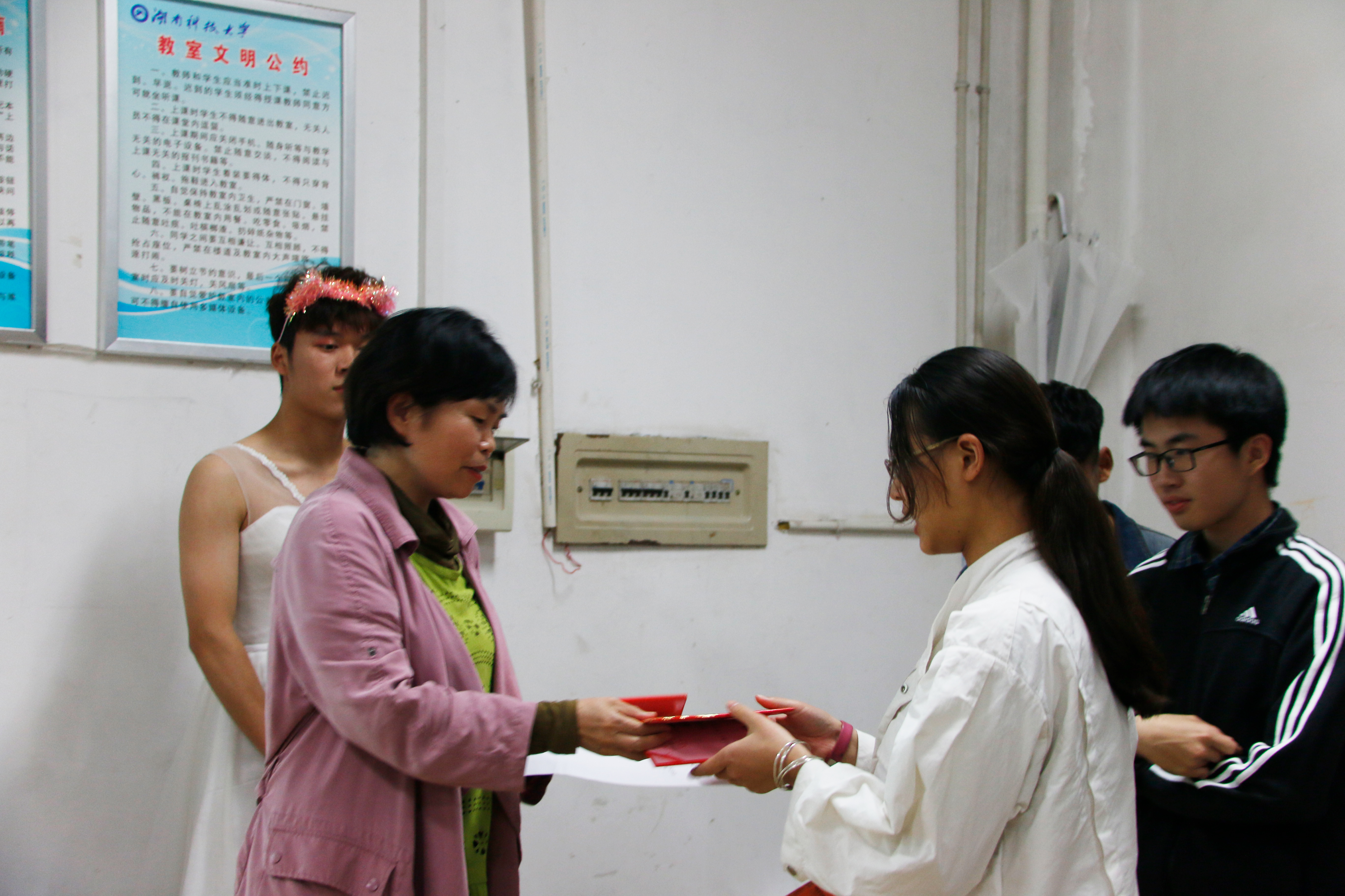 最后,两位老师对此次活动表示赞许,认为同学们的表演让人惊喜,同时她们也希望我们应争取做到让所有班级都能主动参加此类与学风建设有关的活动。