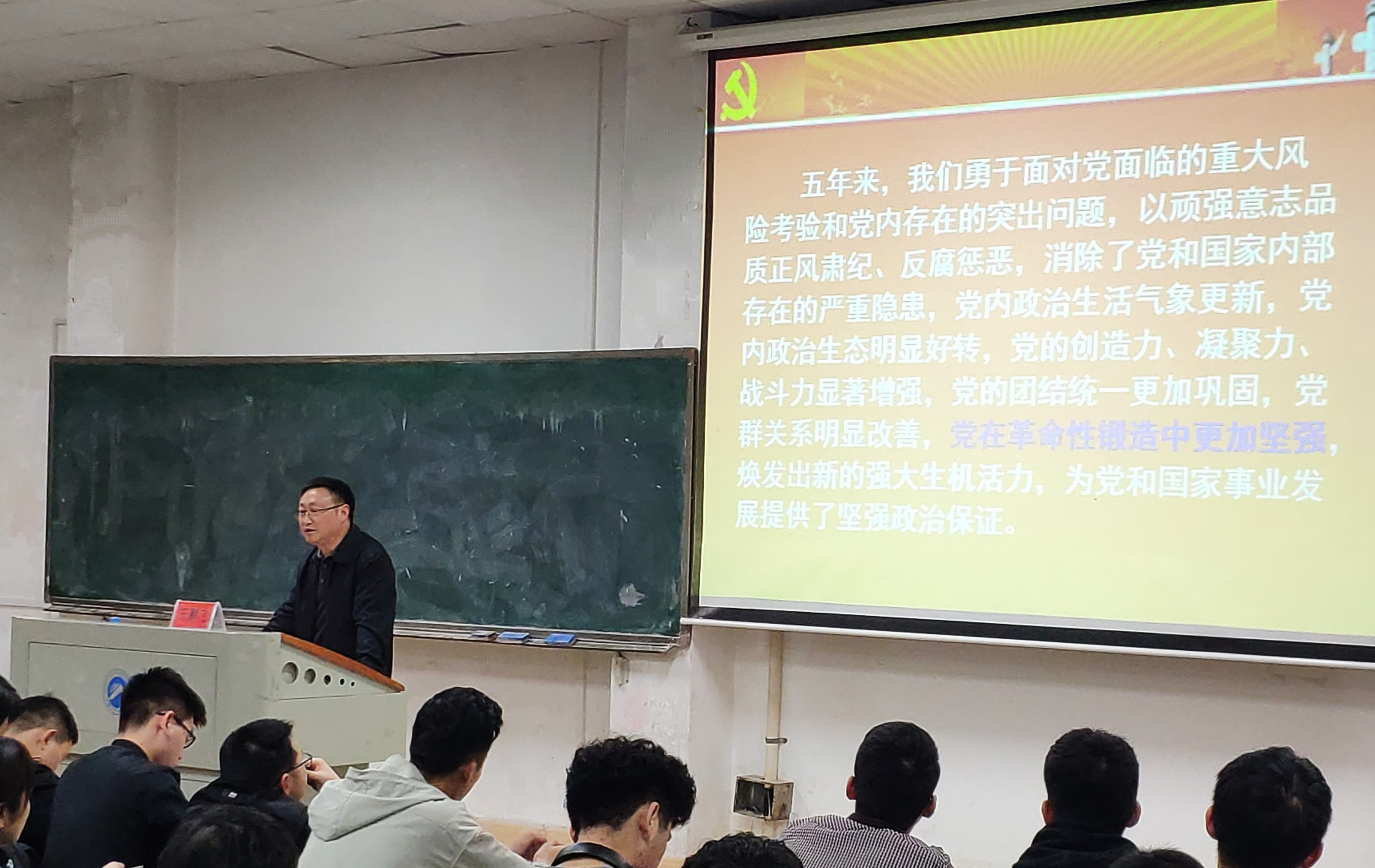 4月12日晚上7点整。3044am永利集团官网(以下简称信息学院)第36期入党积极分子培训第二次授课在五教2-2进行。本节课邀请到了信息学院党委书记王鹏飞进行授课。