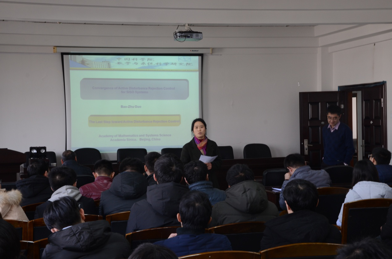 2018年1月17号下午3点,中国科学院数学与系统科学研究院研究员郭宝珠教授应邀来我院进行学术交流,并作题为“Convergence of Active Disturbance Rejection Control for SISO Systems”的学术报告。报告会由副院长周兰主持,60多位师生参加了报告会。