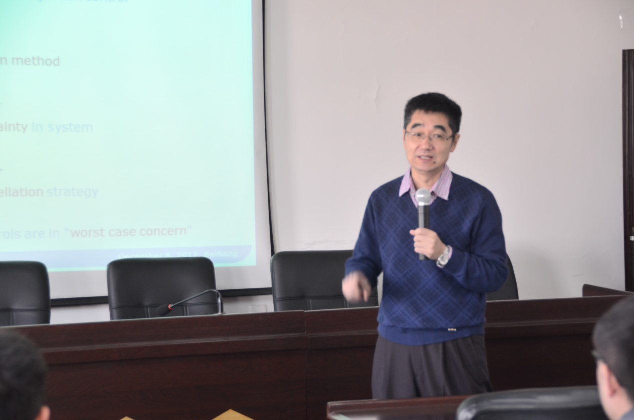 郭教授围绕自抗扰控制技术在单输入单输出非线性系统中的应用研究展开报告。首先,他简要介绍了自抗扰控制技术,其次,详细介绍了自己近年来在自抗扰控制的渊源、思想、原理、算法与实例等方面的研究工作。然后,郭教授对系统收敛性等问题进行了概述,并将自己在无穷维系统的建模,数值分析,偏微分方程解的研究经验与大家分享。最后,互动环节,与会师生积极参与提问,郭教授结合自己多年的研究经验,从科学研究和实际应用角度与大家进行了热烈讨论。